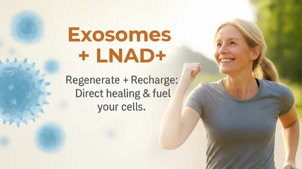 On their own, exosomes direct the body’s cells where and how to heal, while LNAD+ restores the cellular energy needed for that repair. When combined, patients receive a synergistic benefit: exosomes guide the healing, and LNAD+ powers the cells.