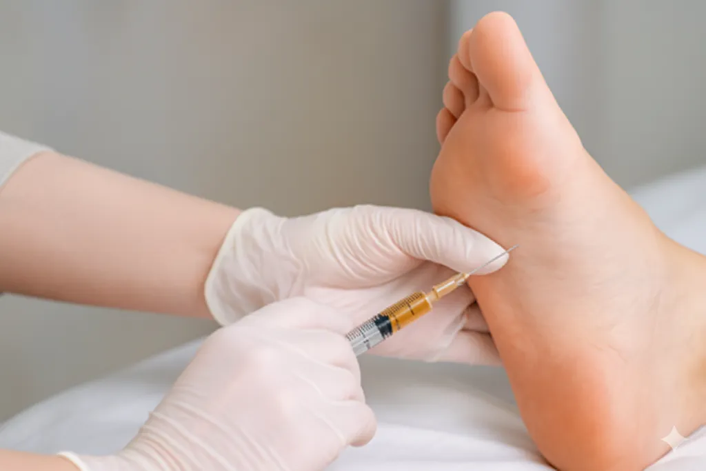In-office injection using ultrasound guidance for precision.At our Valencia podiatry clinic, amniotic stem cell and exosome therapy is performed as a simple, in-office injection under ultrasound guidance. The treatment targets areas of chronic pain or tissue damage—such as the plantar fascia, Achilles tendon, or arthritic joints.
